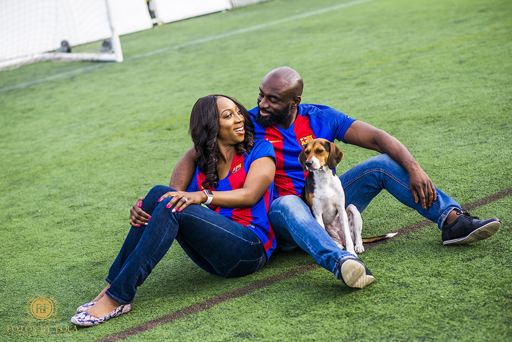 Hello friends! Thank you for dropping by. Excited to share Ann and Emmanuel’s engagement shoot today! When Ann told me about her idea for her engagement shoot i was stoked about the opportunity.  I love it when couples incorporate important aspects of their life into an engagement shoot. We (and the dog 🙂 ) had so much fun at the Atlanta Silverbacks Stadium & Grand Hyatt Buckhead . Can’t wait to celebrate with this amazing couple next month. Check out their story and images below. Enjoy!